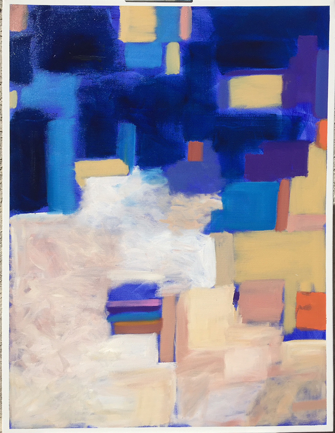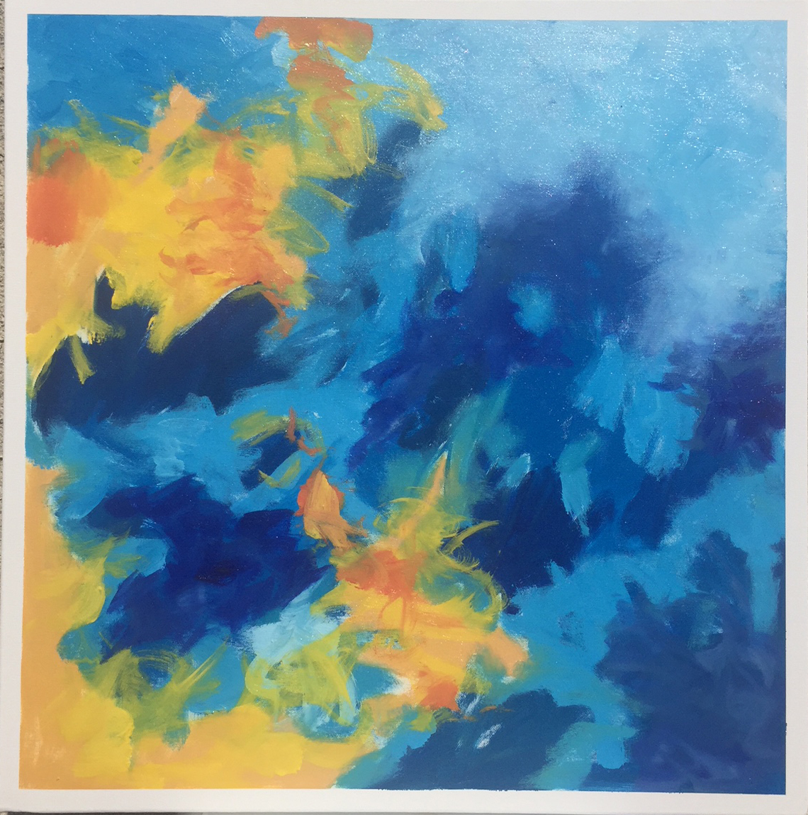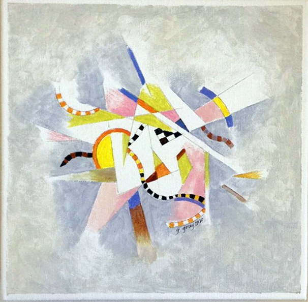 Provocative titles describing a situation or concept inspire performers’ interpretations to words and abstract images. Each of twelve paintings were projected on stage as the setting for a performance by dancers, musicians, or actors.